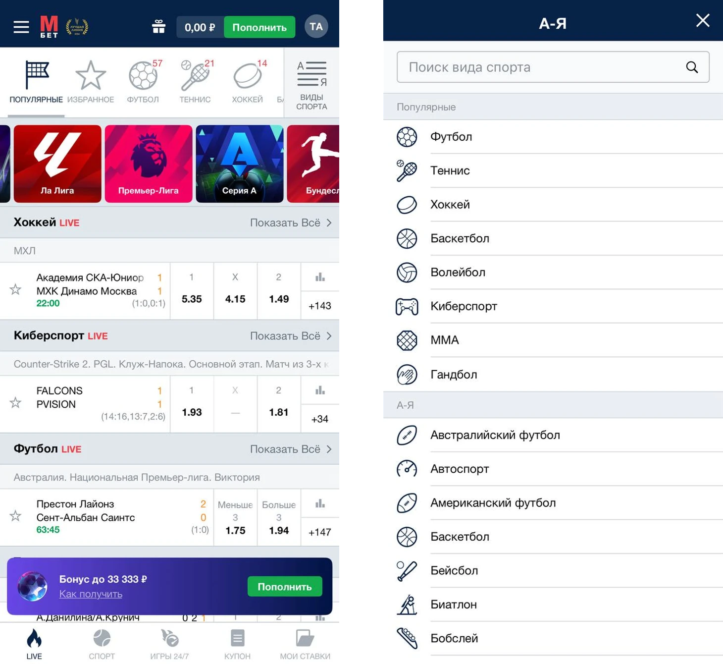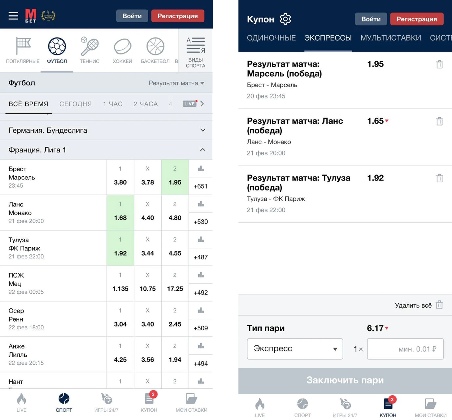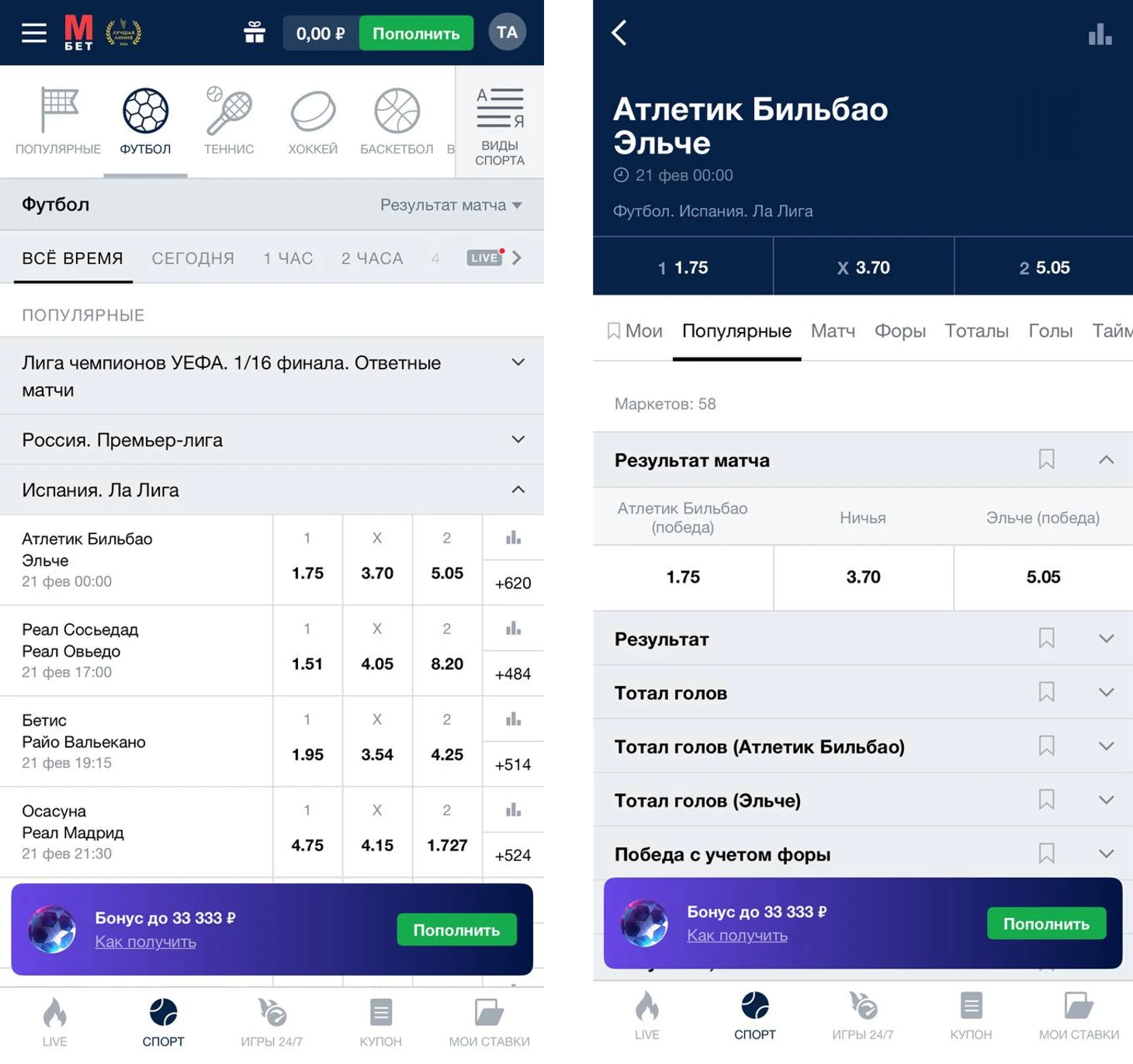 БК «Марафонбет» принимает ставки на спорт и киберспорт в прематче и лайве. Предлагаем пошаговый алгоритм заключения ставки в мобильной версии сайта.